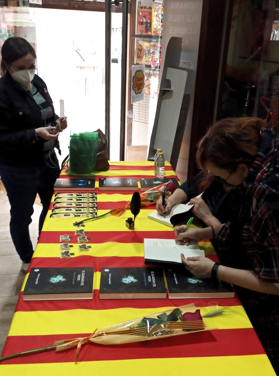 El viernes 22 de abril, había preparado una mesa fabulosa para una triple sesión de autores, yo abría la tarde, y a continuación estarían el poeta Xavier Simarro con su libro y la escritora Elena Cases con su obra Lapislàtzuli. Todo un honor compartir cartelera con ellos, y mucho más conocerles.